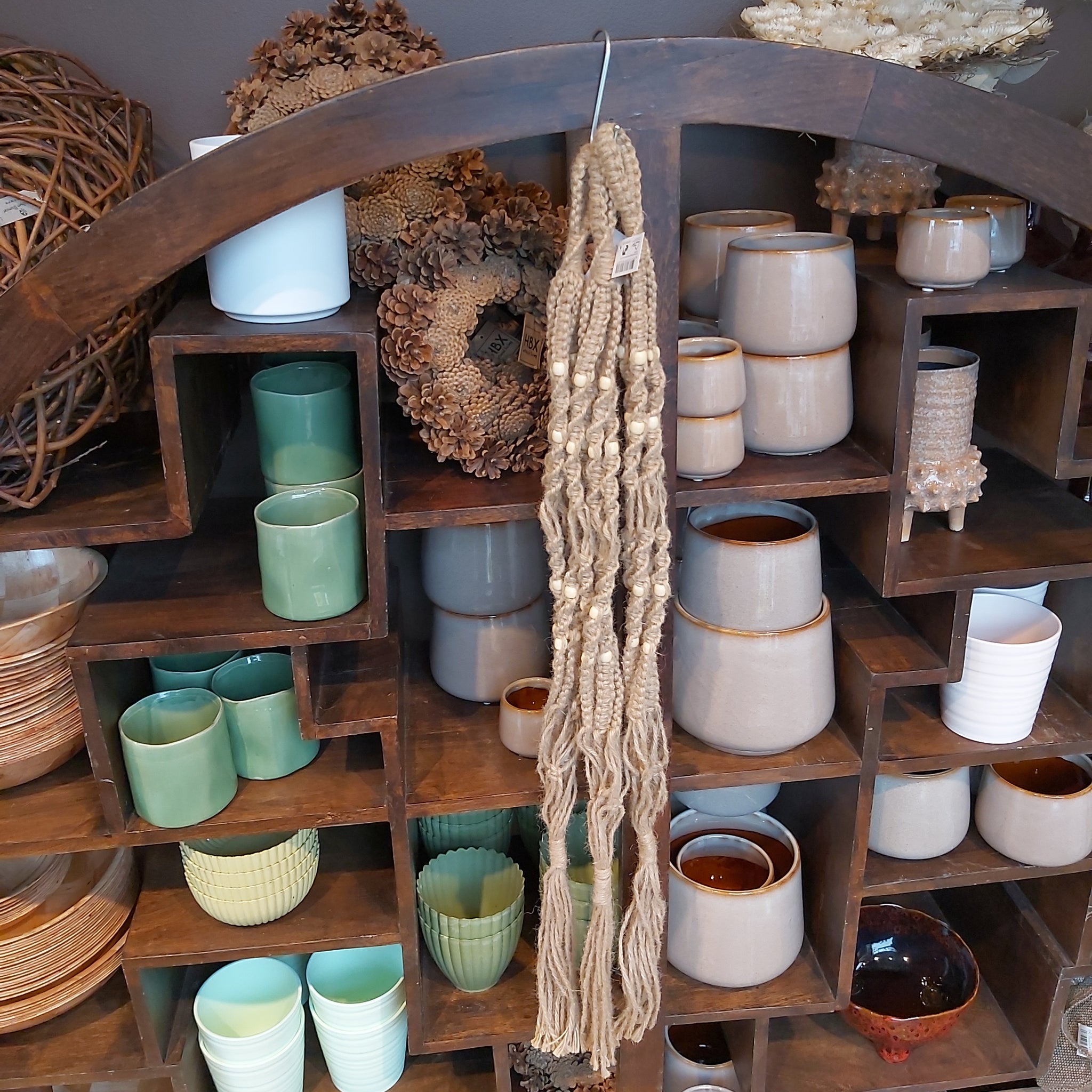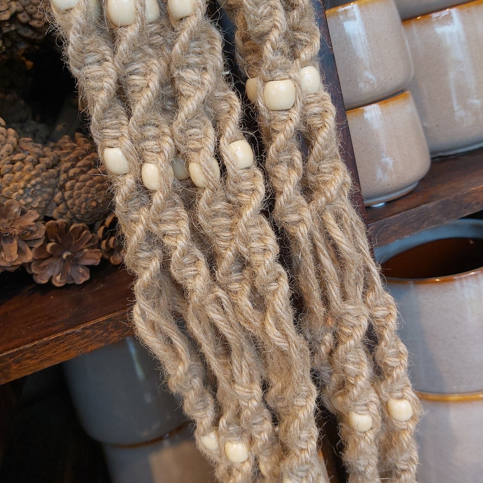 Flott oppheng til krukker i makramé.