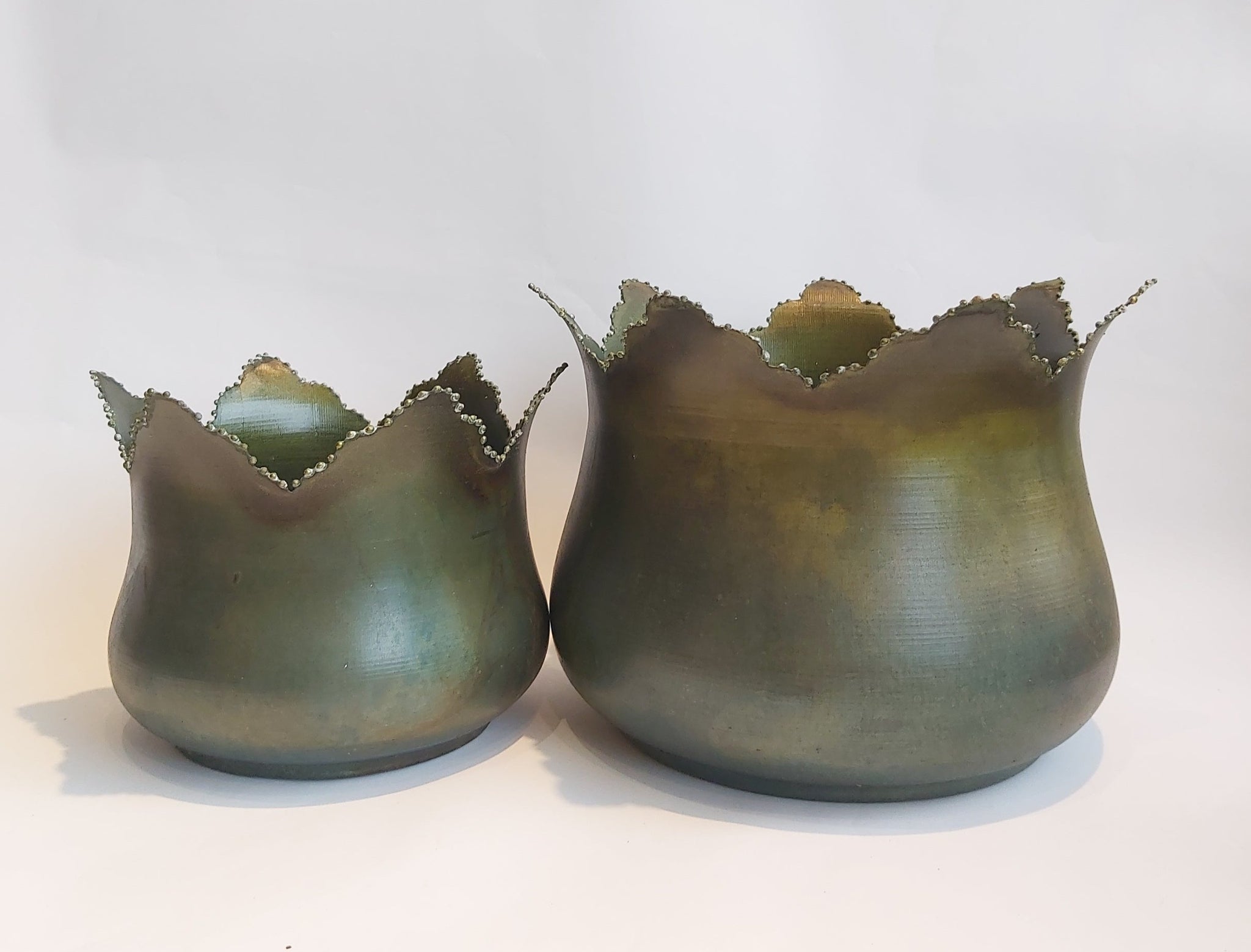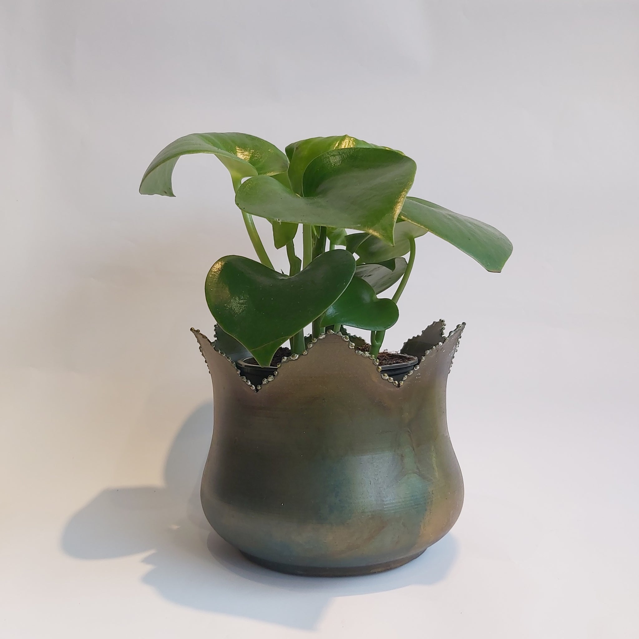 Veldig flotte krukker i messing/metall med flott patina. Utrolig bra pris på disse, og utført i et veldig pent materiale. Her kan de passe med en plante eller kanskje en evigvarende dekorasjon i tørkede materialer. Plantene er vist i den minste størrelsen.