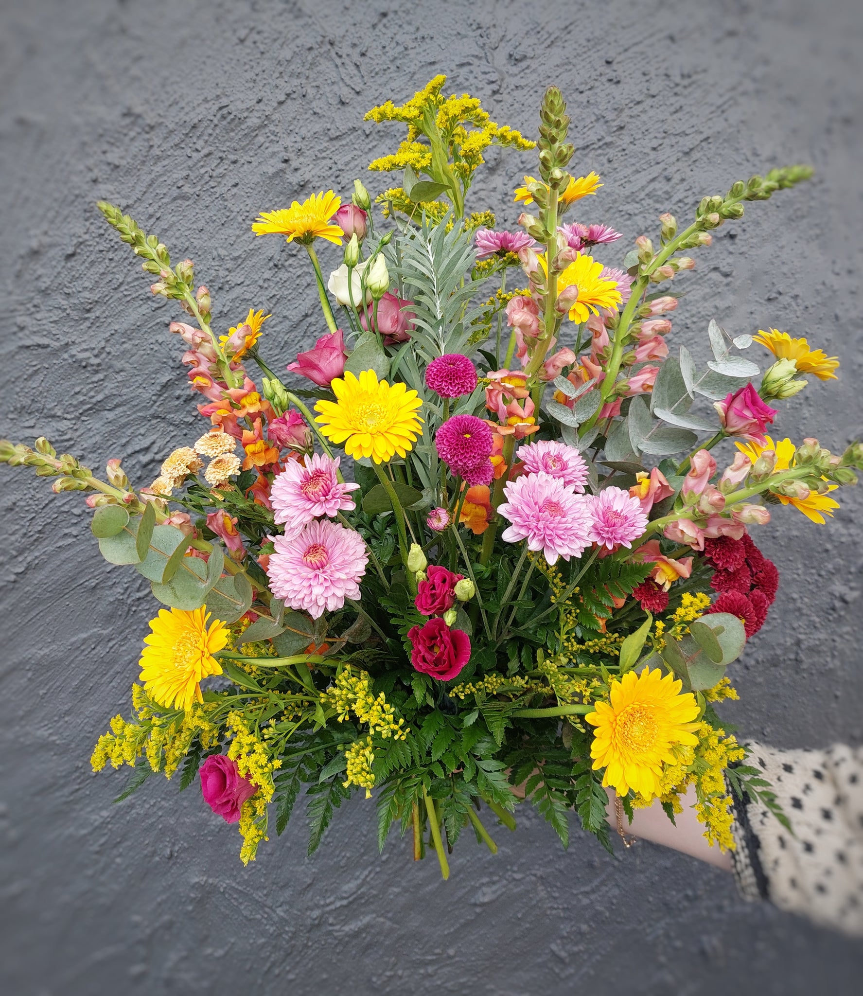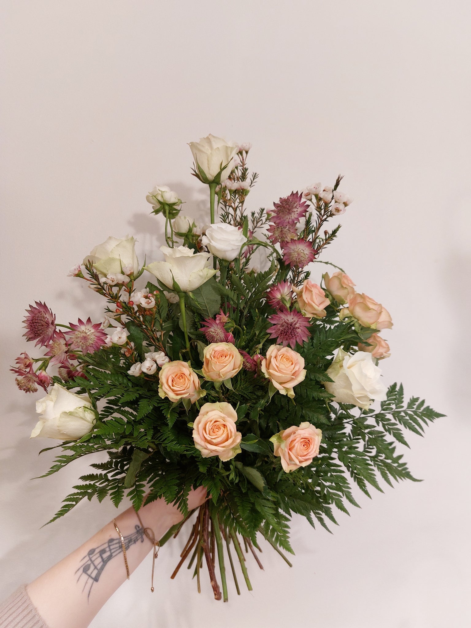Vi leverer bukettene med ett kort hvor det kan stå en hilsen.