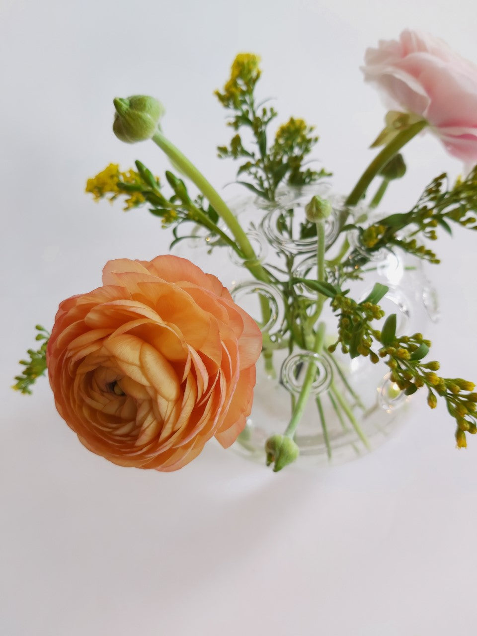 Elegant blomsterfakir i glass fra Peri Design.  Sett løse snittblomster i denne for et rent og elegant uttrykk. Spennende vase med små hull slik at man kan arrangere blomstene slik man vil, bildene viser et eksempel på hvordan man kan arrangere blomstene.
